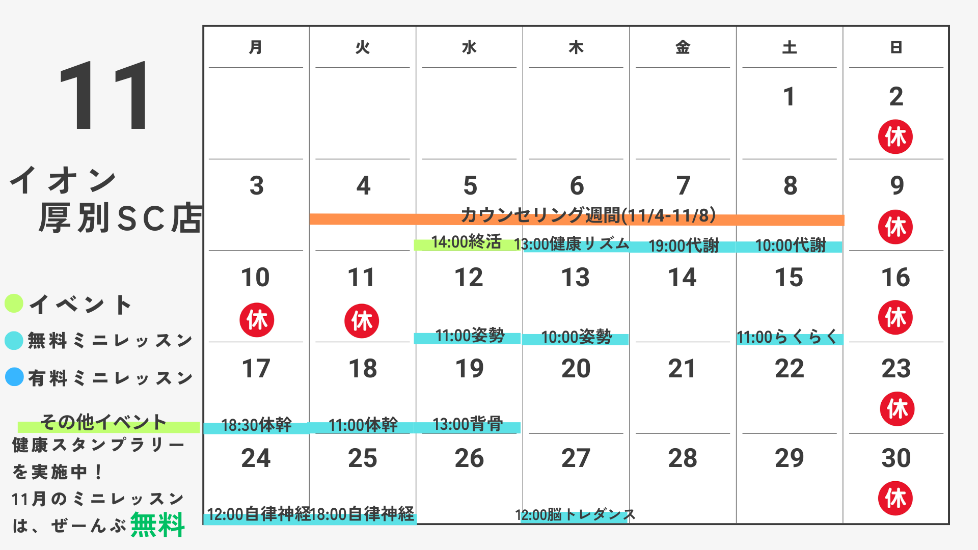 ノビ~ストレッチ巣鴨店、イオン厚別店、屯田店それぞれのイベントスケジュールを公開します!